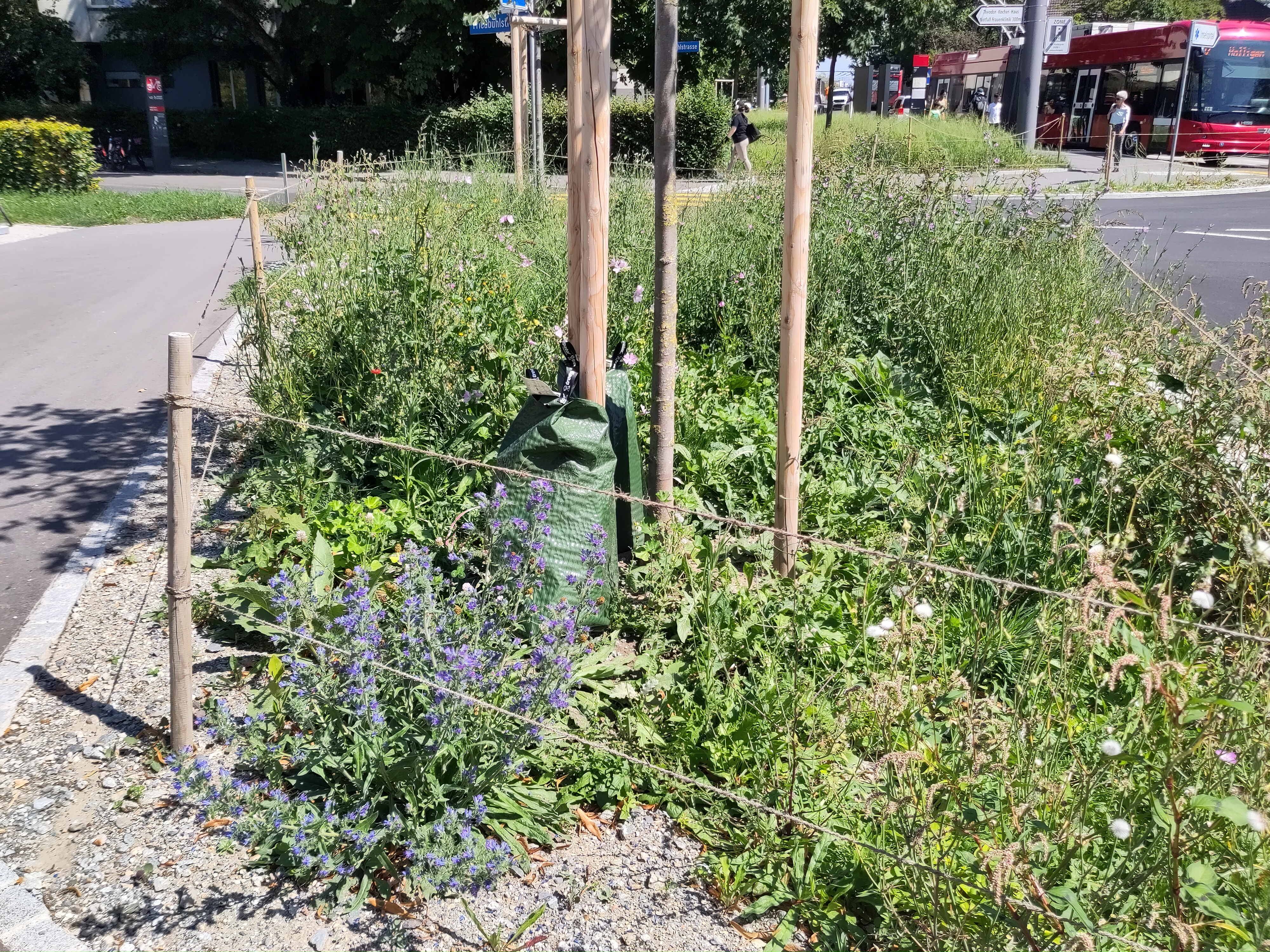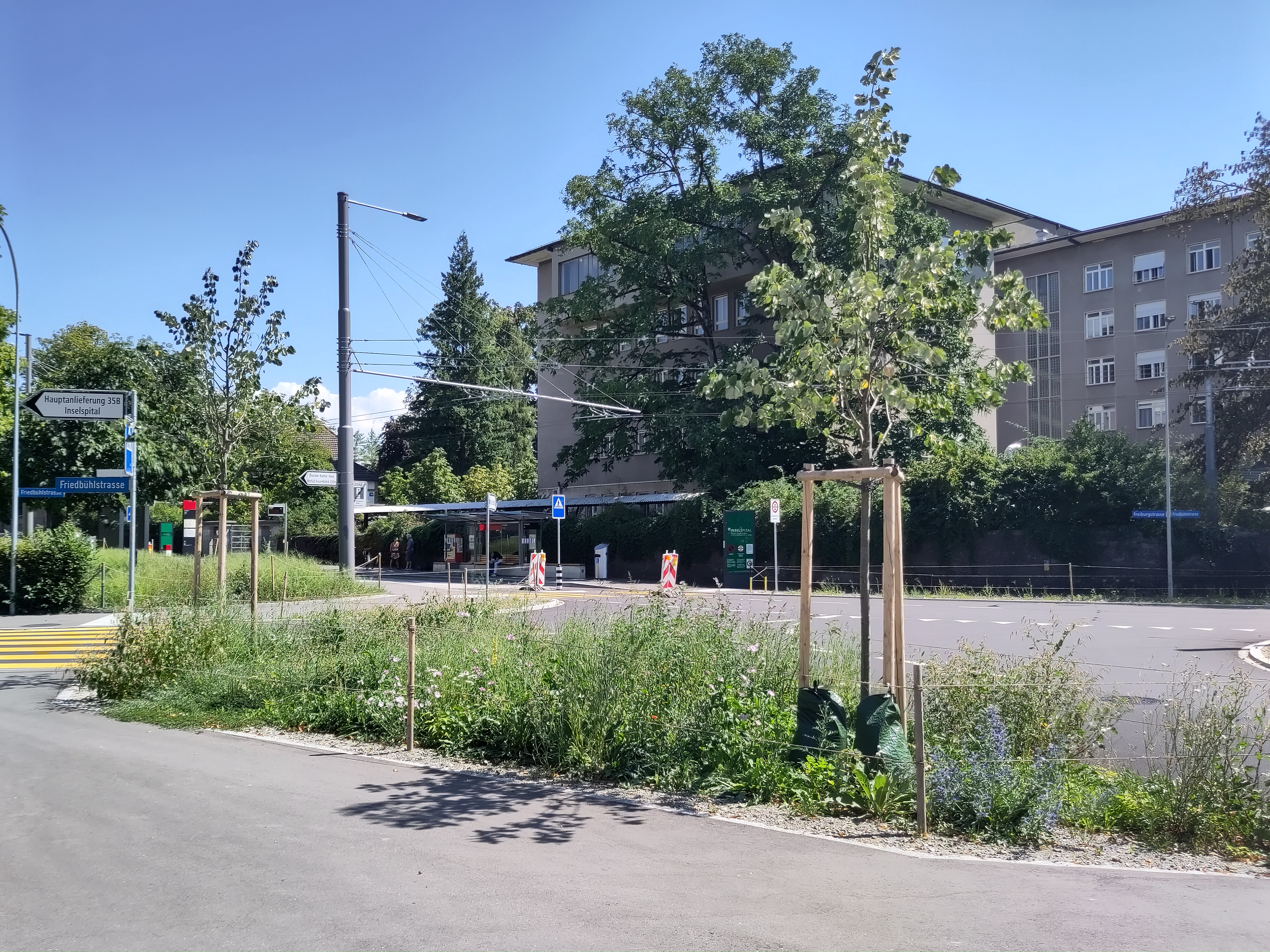Im Rahmen der Klimaanpassung wurden an der Friedbühlstrasse drei Bäume gepflanzt. Die Baumpflanzung dient einem Versuchsprojekt zur Untersuchung der Wirksamkeit von Substraten.